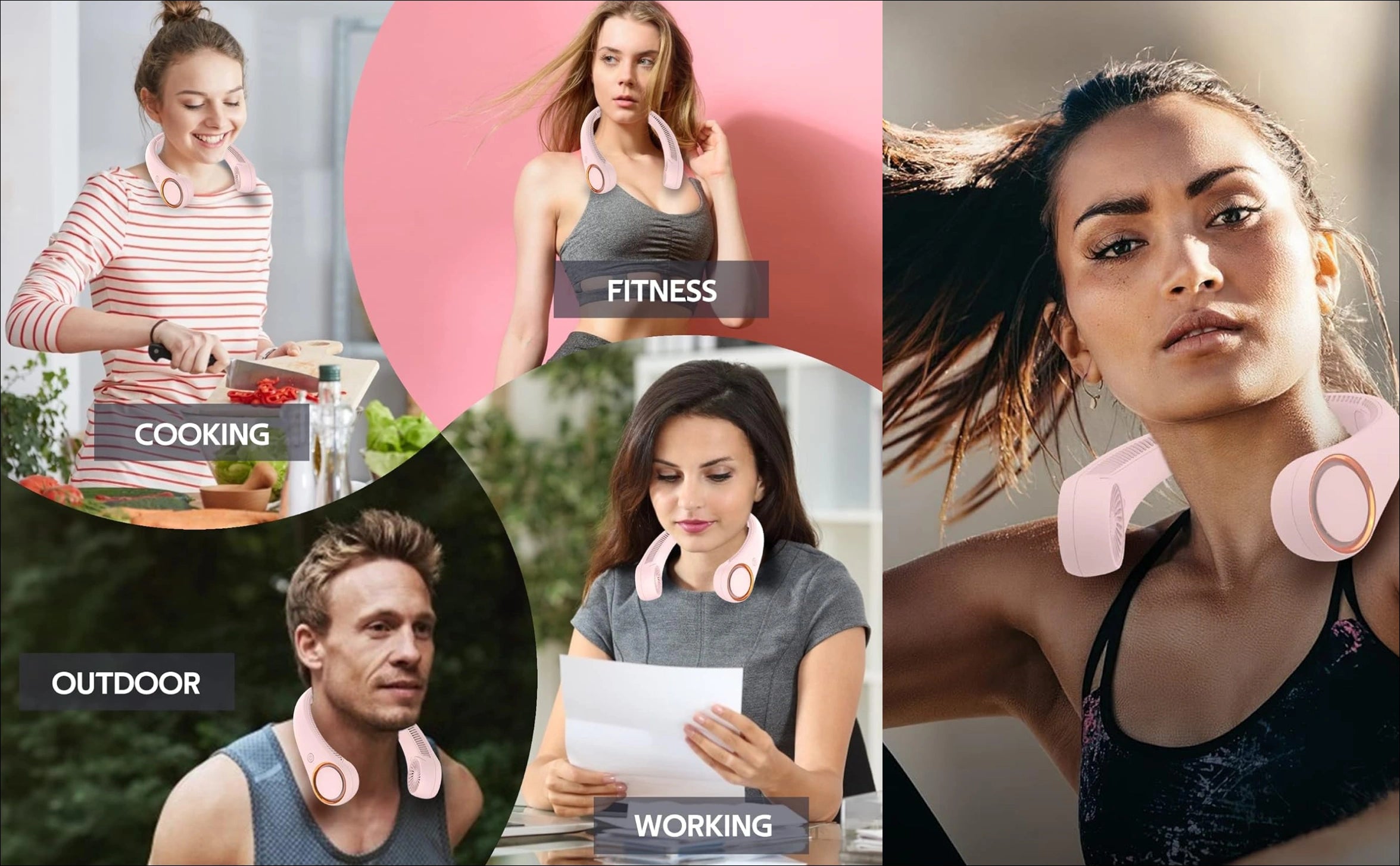 Comfortable neckband design with safe bladeless airflow, perfect for hands-free daily cooling